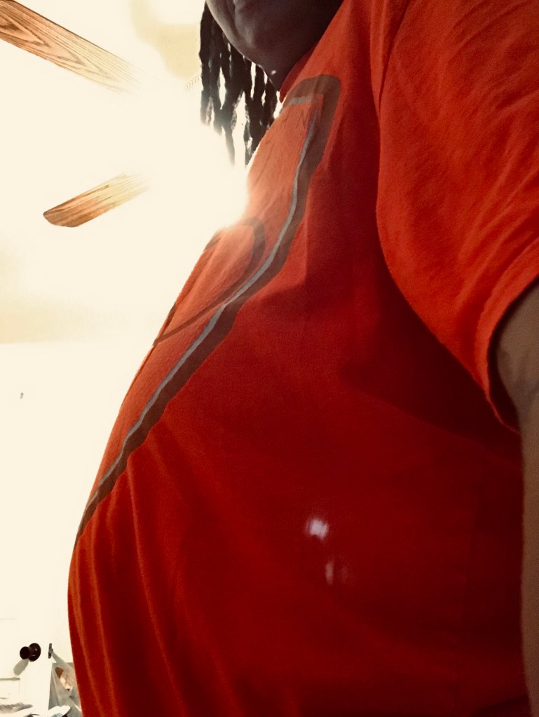 Or like I was smuggling a basketball under my shirt.